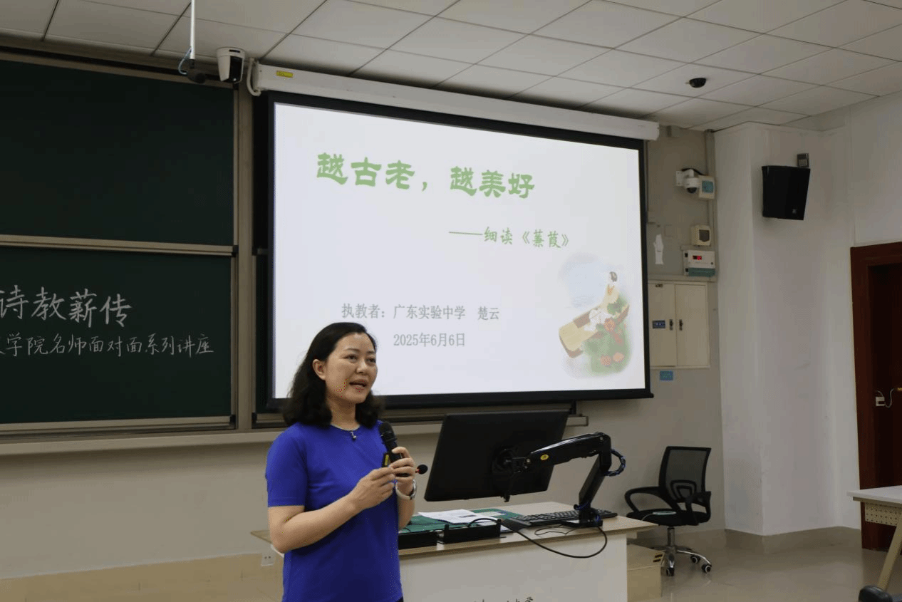 汉语言文学专业师范生古诗词教学的实践能力,让师范生近距离感受名师课堂的魅力,2025年6月6日下午,以《溯游从之·诗教薪传——〈蒹葭〉示范课暨古典诗词教学专题研讨》为主题的吃瓜网