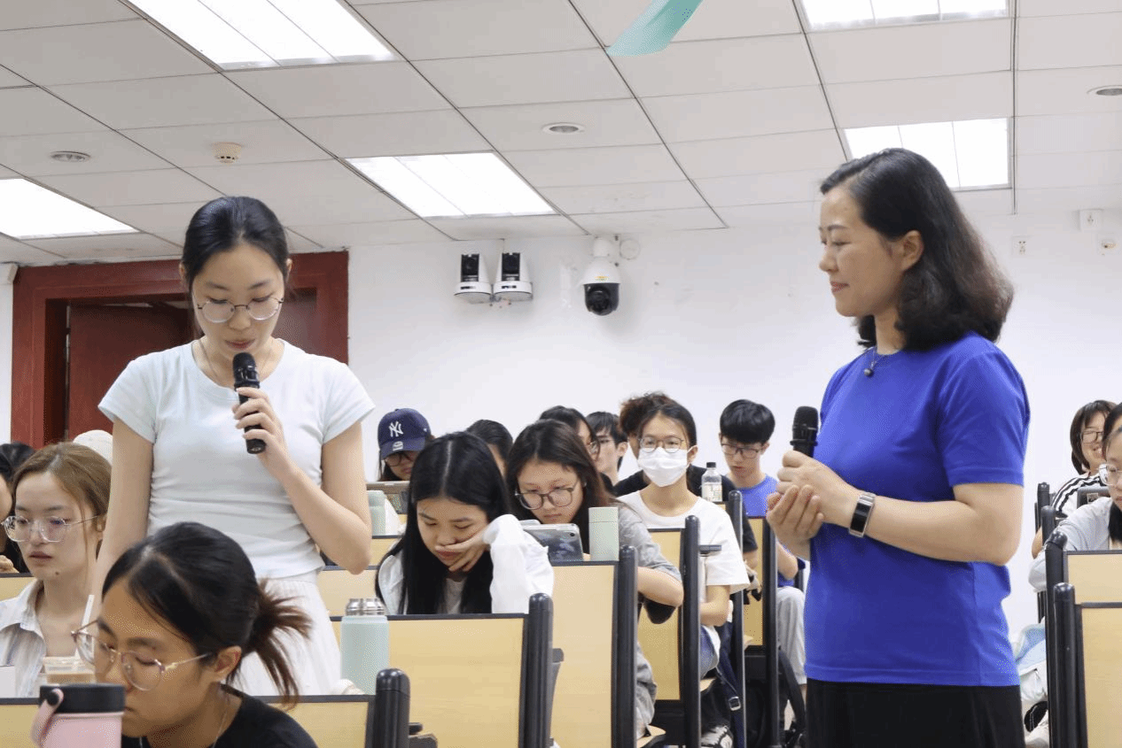 名师面对面系列活动,再次将中学教学名师引入大学课堂,邀请不同学院的学生以学习者身份参与示范课,通过“观察者+参与者”双重身份,直观学习教学实践技能,现场反响热烈。从教学理论到真实课堂的身份转换,同学们收获了多元体验。22级语言学及应用语言学研究生周永昌从教学策略的角度出发谈了自己的学习心得:楚云老师为学生提供了很多感受美的支架,如朗诵方法、对比不同文本翻译、“看图找茬”等,让学生多次出入文本从而感受到美,希望自己未来成为老师时也能为学生提供类似指导。英语223何敬结合专业视角谈了自己的感受:楚老师的课通过许渊冲与韦利译本的对比,直观体会到东方诗歌‘写意’与西方‘写实’的审美差异,也理解了翻译家在跨文化传播中保留诗意朦胧感的匠心,这种跨学科的解读方式让我对诗词教学有了新认知。本次活动既让同学们近距离感受名师课堂魅力,也通过实践反哺理论学习,让教学方法从抽象概念变得具体可感,为未来教学设计提供了鲜活范本。