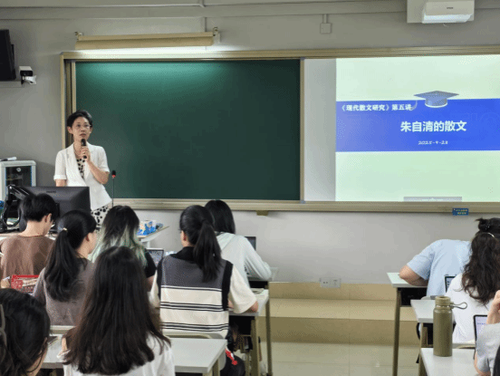 9月28日第一大节,文学系哈迎飞教授主讲的公开课《现代散文研究》在文清楼501举行,校督导、院领导,以及部分青年教师共同观摩学习。