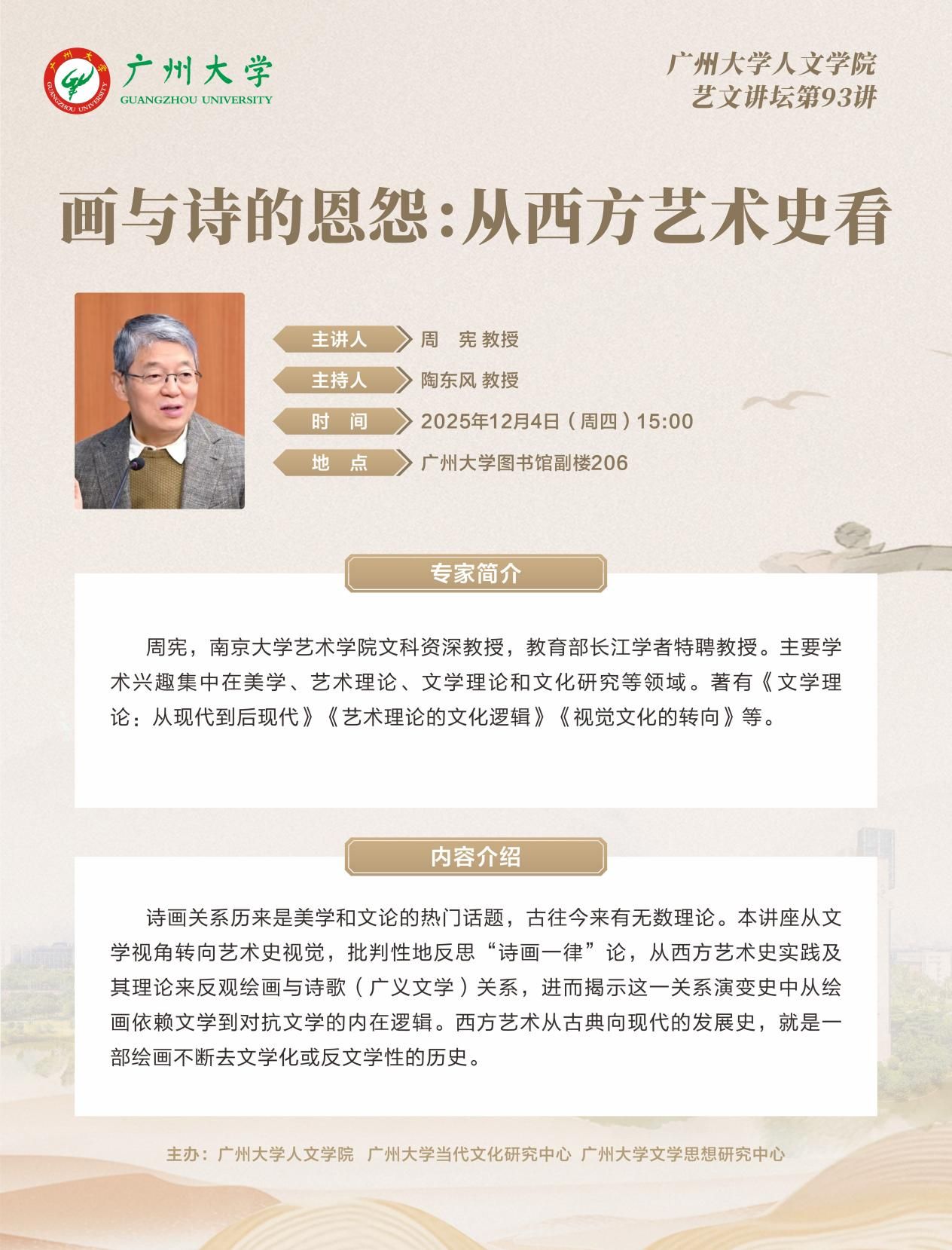 讲座预告丨周宪:画与诗的恩怨:从西方艺术史看