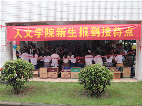 一天的迎新工作在不知不觉中结束,为了成为新生们大学里的第一缕阳光,工作人员没有丝毫抱怨。在这两天里,老师、导生们从早陪伴到晚,走上六七楼的宿舍,一间一间宿舍进行慰问,工作人员冒雨清理场地布置现场,清晨五点起床准备工作,淋雨帮忙搬运行李,而这一切,都是为了小萌新们的大学生活能有一个完美的开始。萌新和家长们的一句谢谢或一个微笑,都让这些辛苦变得无比值得。