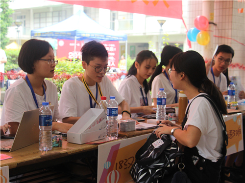 下了好几天的雨,也在早晨时分变得晴朗。不多时,新生们陆陆续续来到了报到点。导生们耐心地帮新生办报到手续,回答新生问题,亲切地和他们打趣,消减了新生们的紧张与不安。