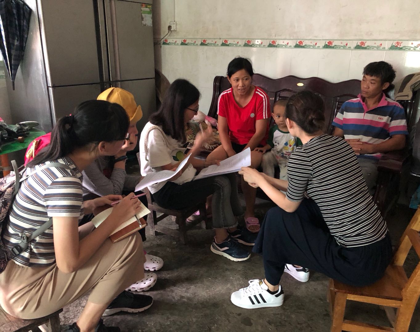 “年轻人大多数从小就开始接触、学习普通话,作为家中主要经济收入支柱,普通话好一些的年轻人大都到广东、福建那些地方打工去了,留在家里的极少”,下南乡副乡长卢晓东说道。为了配合队员们的调查工作,他亲自带着大家一村一屯考察,一家一户走访。
