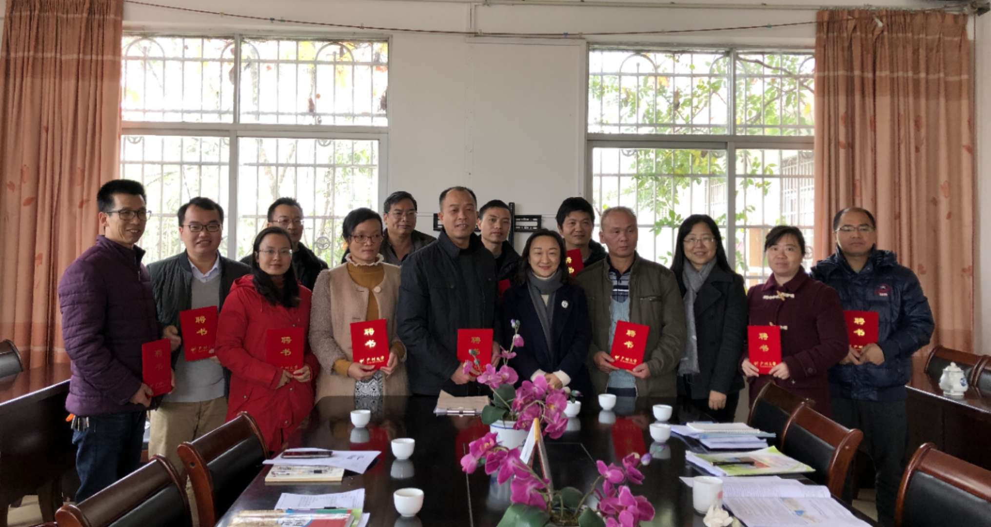 最后,王书记给支教实习指导老师们颁发聘书,向从化区吕田中学赠送纪念品以示感谢。