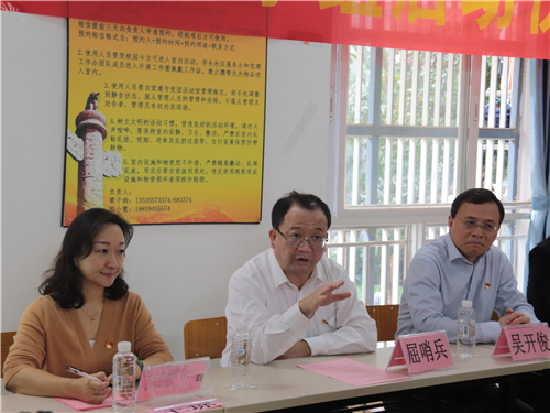 随后,校党委书记屈哨兵同志讲话。屈书记提到,在学生公寓设立党小组是学生党建工作的创新,实现了“三年启动计划”中第一年的规范化建设,并为后两年的计划奠定基础。在学生公寓成立党小组,要做到:每个学生党员在宿舍是模范;学生党员所在的宿舍是“样板间”;积极建设红色楼宇。