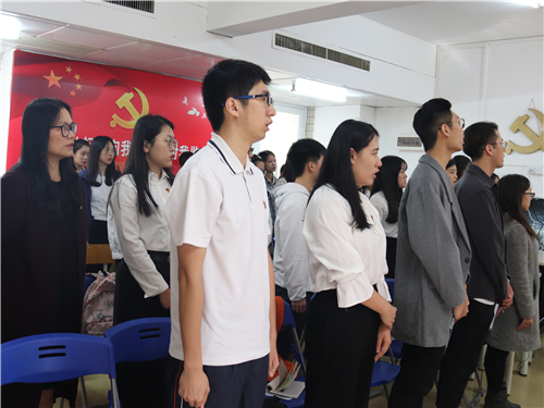 在校党委书记屈哨兵同志的带领下,到场人员一同重温入党誓词。入党誓词的重温让在场党员更加明确自己的身份,更有利于党员发挥其先锋模范作用。