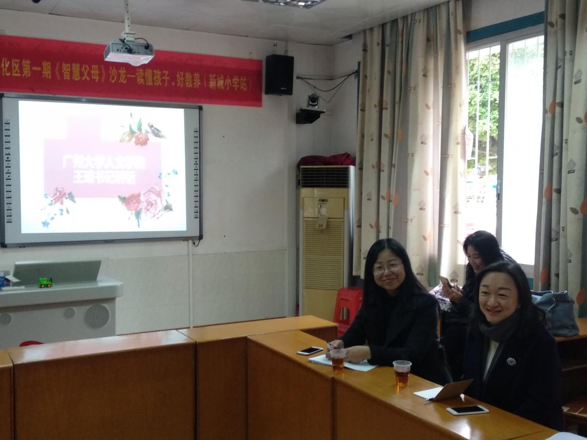 教务办周文暖老师,从化区街口街新城小学邝卫华校长、周婉玲副校长、教导处黄丁群主任以及从化片区的三所学校的实习支教生。