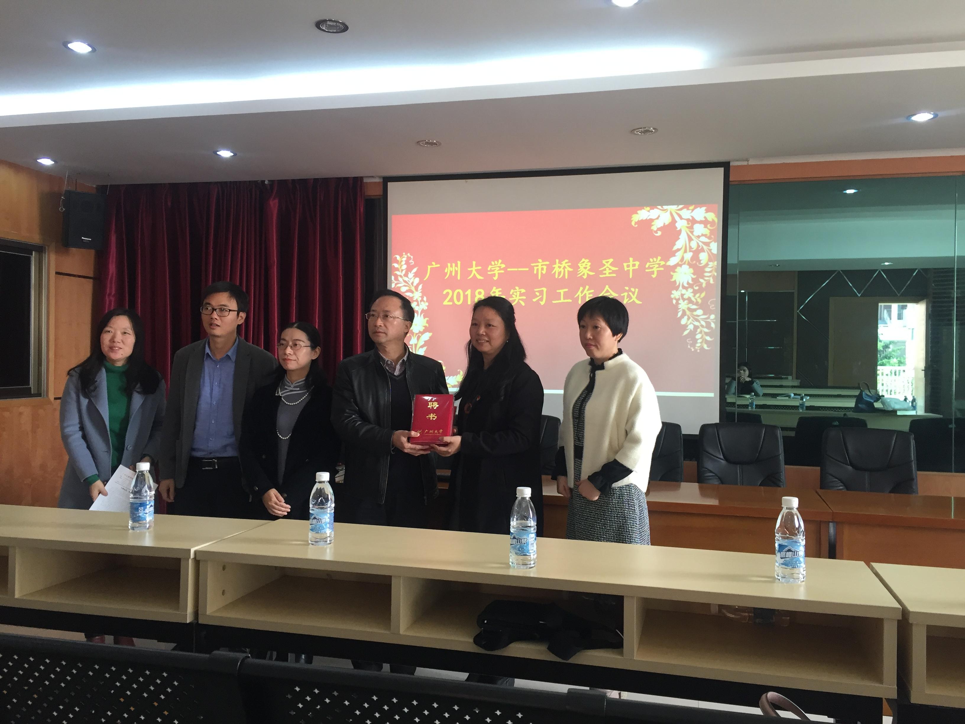 刘书记向富丽小学授予荣誉牌匾、颁发指导老师聘书,并组织合影留念。之后,刘军军书记和刘军军书记、教务办张姣主任和李丽华老师一同听了实习支教生所上的一节历史课,课后并共同点评指导了该堂课。
