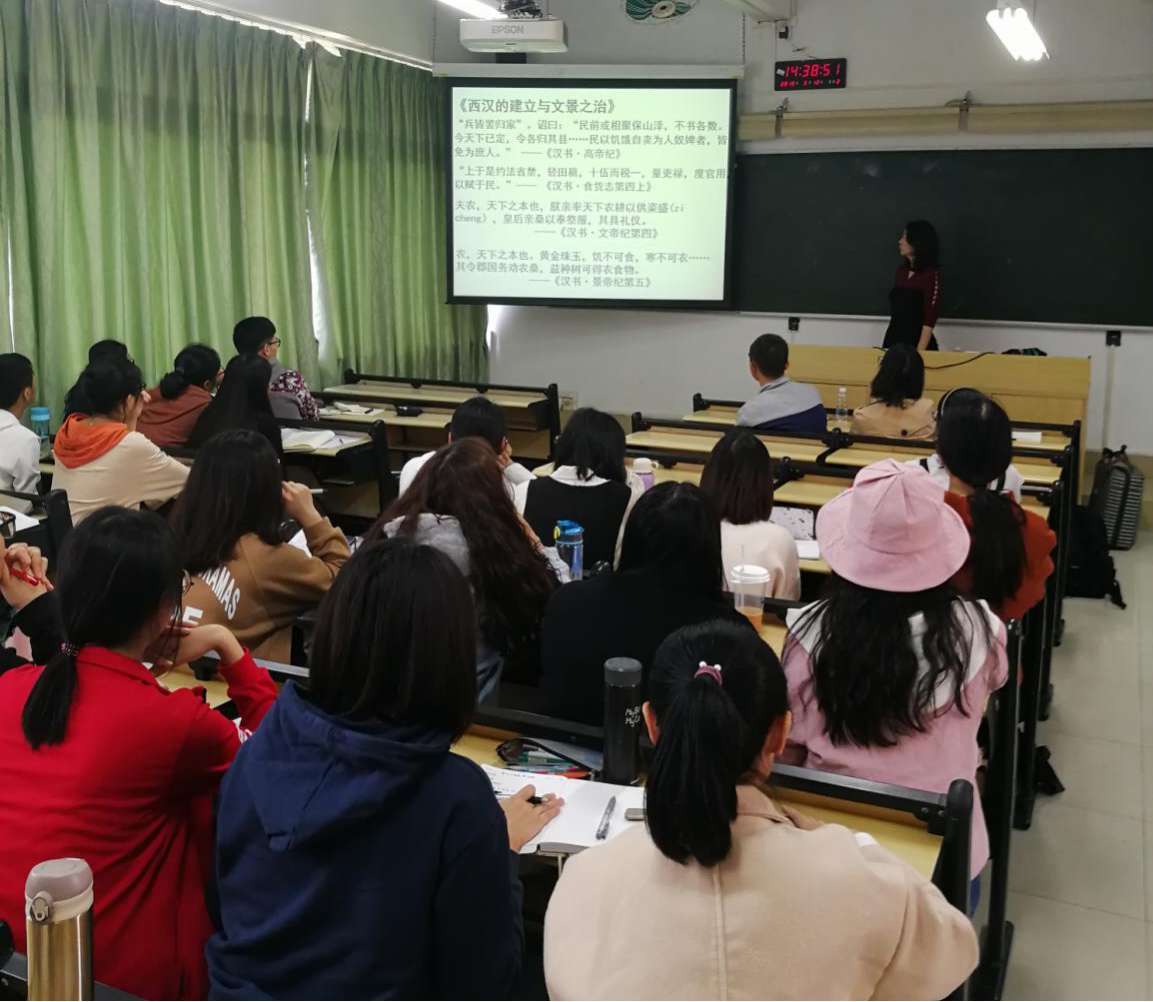 历史系在文新301室开展了一场师范生技能讲座。我们有幸邀请到来自广州市铁一中学的历史教学名师——陈雯老师。她自2003年起进入广州市铁一中学从事历史教学工作至今,任职期间,工作成绩突出,多次被评为“优秀教师”,所上公开课获评为“省部级优课”。陈老师长期担任市、区各项比赛评委,多次在区里进行专题讲座,广获好评。
