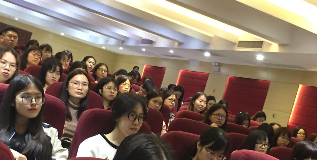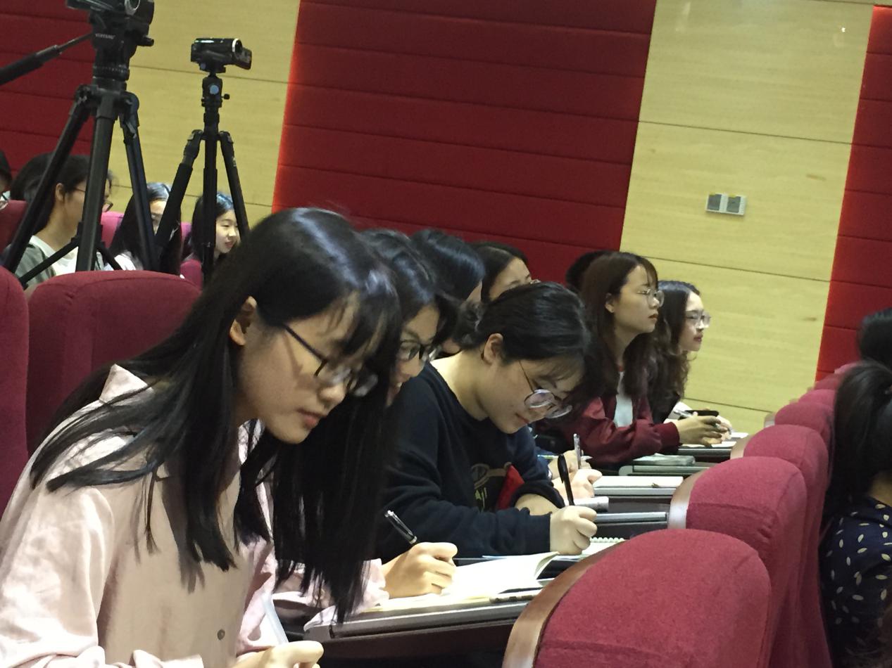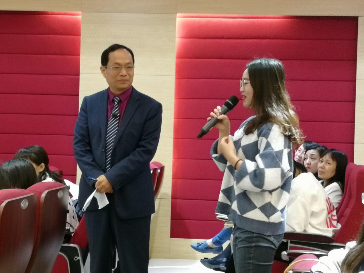 师范生共同参与讨论。观众席上的师范生学姐大方参与,选择了绝代佳人描述了一段话,引来一片喝彩。