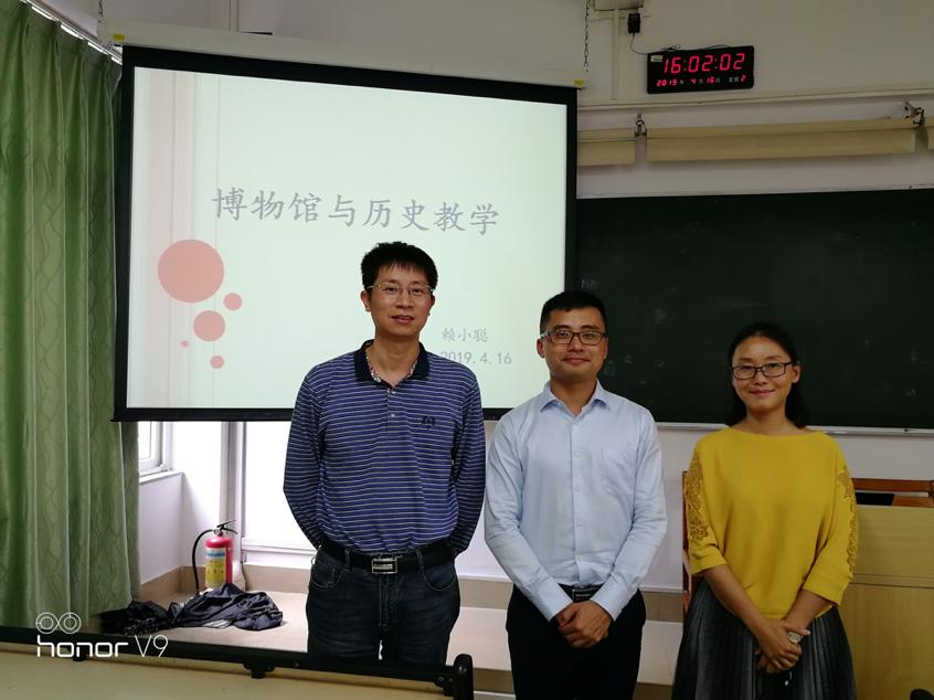 历史系举办了师范技能系列讲座的第三场——博物馆与历史教学。本次讲座邀请到了广州市育才实验学校的赖小聪老师,讲座主持人为凌彦老师。赖小聪老师是一名优秀的中学历史一级教师,自2012年毕业后进入广州市育才实验学校从事初中历史教学工作至今,任职期间,赖老师在广州市举办的各类学生比赛活动中多次被评为优秀指导老师,历史公开课曾获“广州市级优课”,越秀区微课制作一等奖,班会公开课获校级一等奖,班主任德育研究论文获越秀区二等奖等奖励。