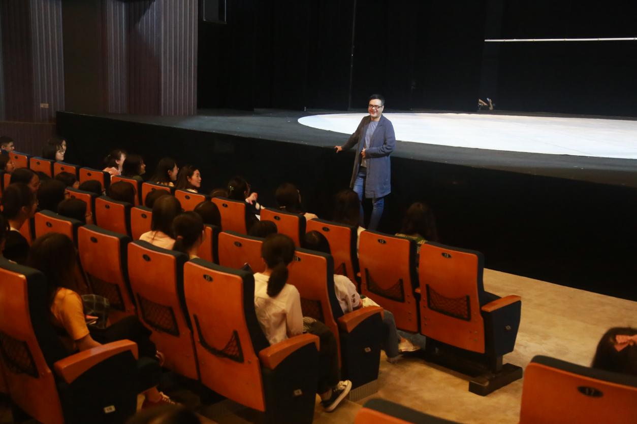 参观结束后,师生们对话广州话剧艺术中心市场总监陈志荣先生。陈志荣先生介绍了广州话剧团的历史和当今话剧市场的现状,并与师生们就话剧观众的培养和实习生要求等问题进行了讨论。