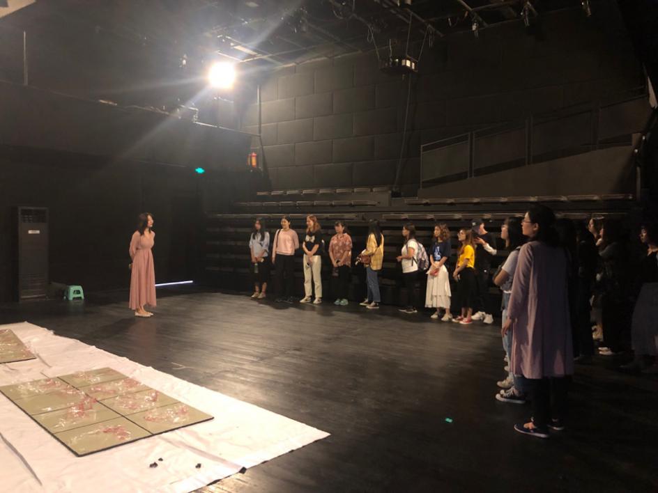 中午十二时,在剧院工作人员的引导下,师生分组参观了广州话剧艺术中心的十三号剧院、U13戏剧空间、化妆间、道具制作间等,深入了解了各个空间的功能与话剧的编排流程。