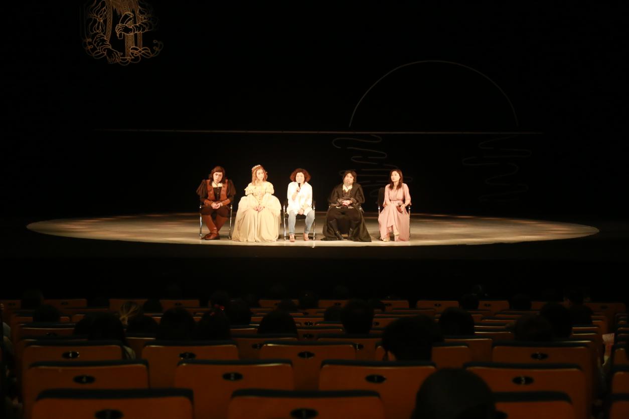 观看了两个半钟头的《威尼斯商人》演出后,师生们参与了演后谈的环节。吕珍珍老师对360度旋转舞台的运用问题,赵雪梅老师就剧本改编的问题,与王筱頔导演进行了交流。王筱頔导演讲述了旋转舞台在我国话剧舞台的运用历史,及在这部话剧中使用旋转舞台的意蕴;并强调因为夏洛克身上存在的人性弱点,具有普遍的意义,因此在剧本改编过程中删掉了由契约引发的宗教冲突相关内容。同学们也在剧作改编、人物塑造等方面提出了自己的见解,现场气氛十分活跃。