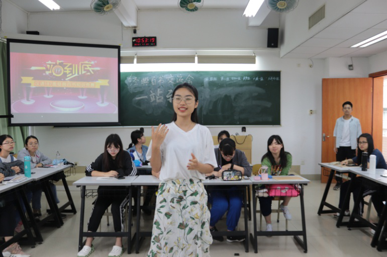 本次活动采用“一站到底”竞赛模式来重温经典百书的知识。全班共分为六组,在主持人介绍完比赛规则后,同学们以饱满的热情投入到第一轮比赛——轮答题。每位同学都认真思考,积极作答。