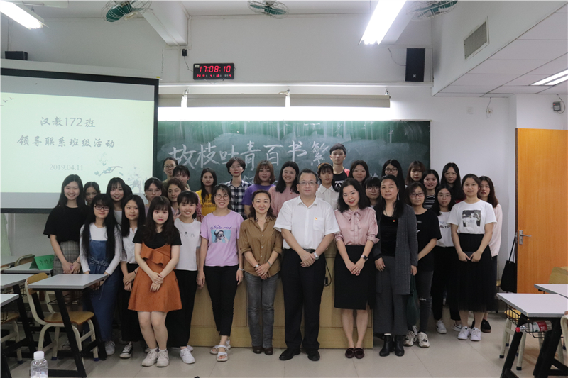 4月18日下午,汉教172班在文新217顺利开展了以“故枝吐青百书繁,领导标新师道传”为主题的领导、教授联系班级暨经典百书导读活动。校党委书记屈哨兵教授、院党委书记王琼老师、院党委副书记刘军军老师等领导老师和汉教172班全体同学参加了本次活动。