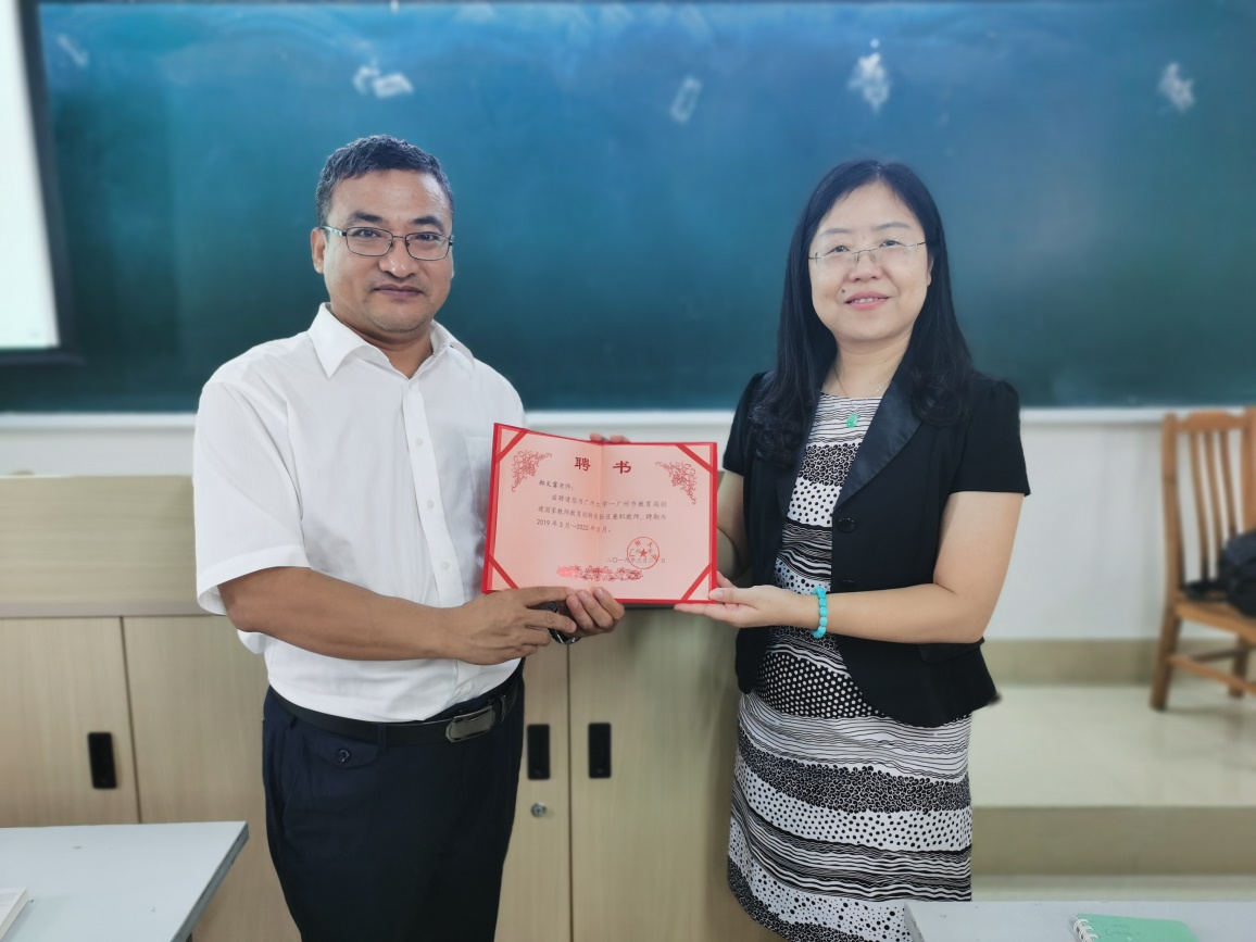 (林晖老师为郑文富老师颁发聘书)