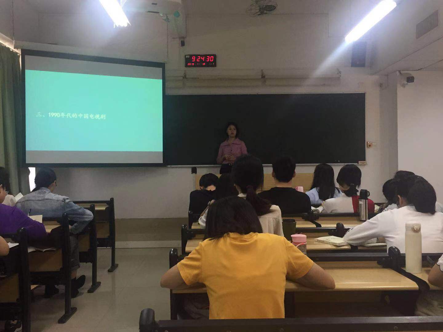 本节课主要讲了中国电视剧的前世今生,特别是近四十年中国电视剧的发展情况。盖琪老师从《四世同堂》《渴望》等几个经典的影视剧片段入手,形象生动地介绍了中国电视剧的时代特色,更结合本省地域特色,深入剖析了“岭南电视剧”的品牌效应。盖琪老师讲课见解独到,课堂既穿插着有趣的影视知识,又有学术研究的前沿动态,可以使同学在领略知识魅力的同时提高鉴赏影视作品的能力。课堂教学重点突出,语言自然流畅,内容新颖独特。老师循循善诱,注重课堂互动,引导学生深入思考,课堂气氛活跃,教学效果极佳。