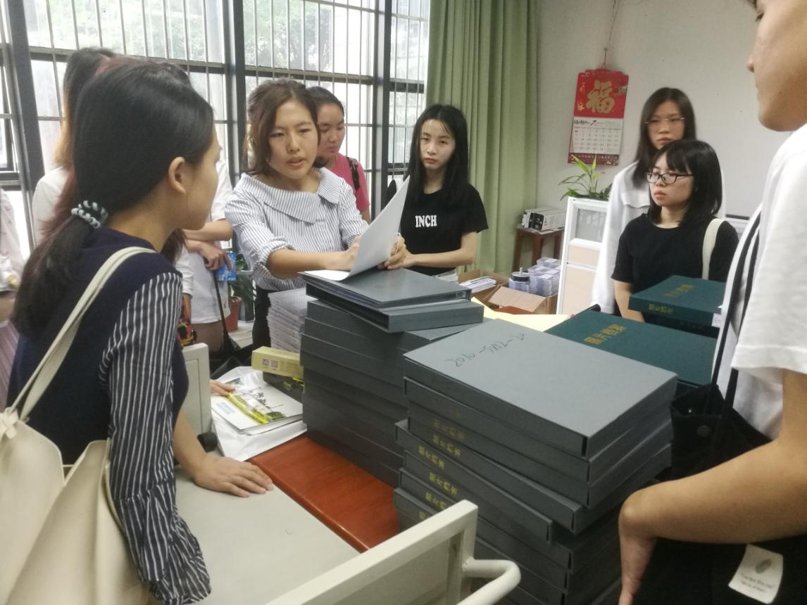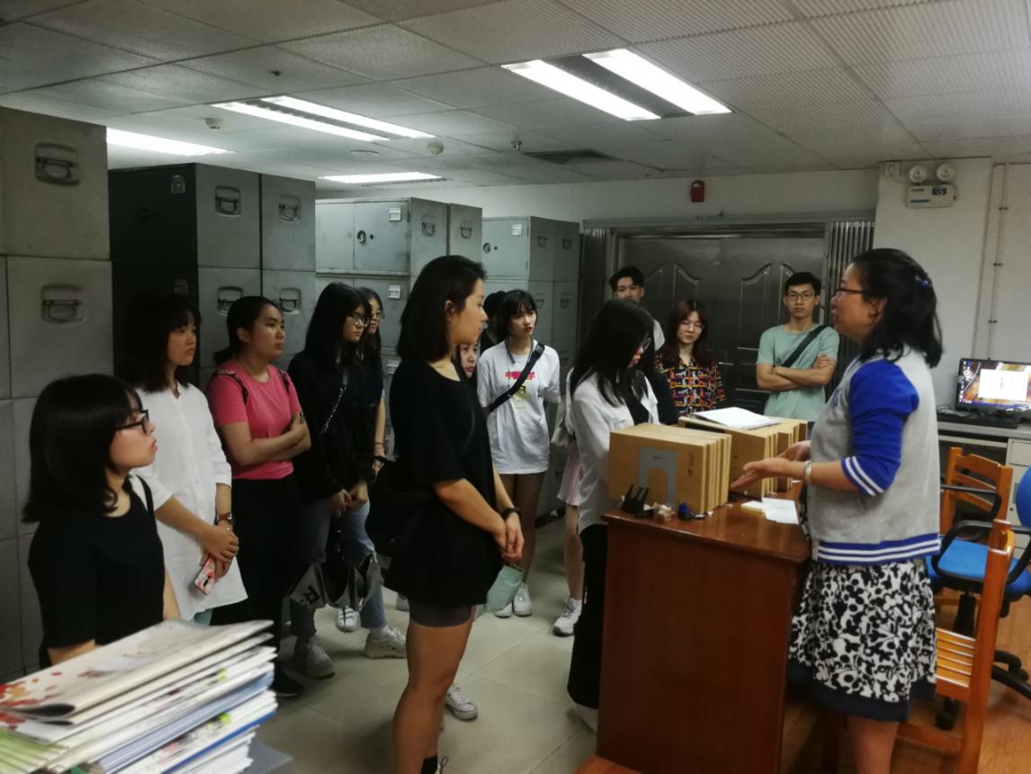 在参观环节中,部分同学们在库房管理人员陈秀云老师讲解下,了解档案库房保管的情况;另一部分同学则聆听王素贞、陈淑香、邢淑霞、杨忠华和李静等老师介绍基建档案、学籍档案、招标档案、声像档案等类别档案的整理归档。李静老师还向同学们介绍了档案馆所做的校史整理出版系列工作:包括采集老校友口述档案、举办庆祝吃瓜网