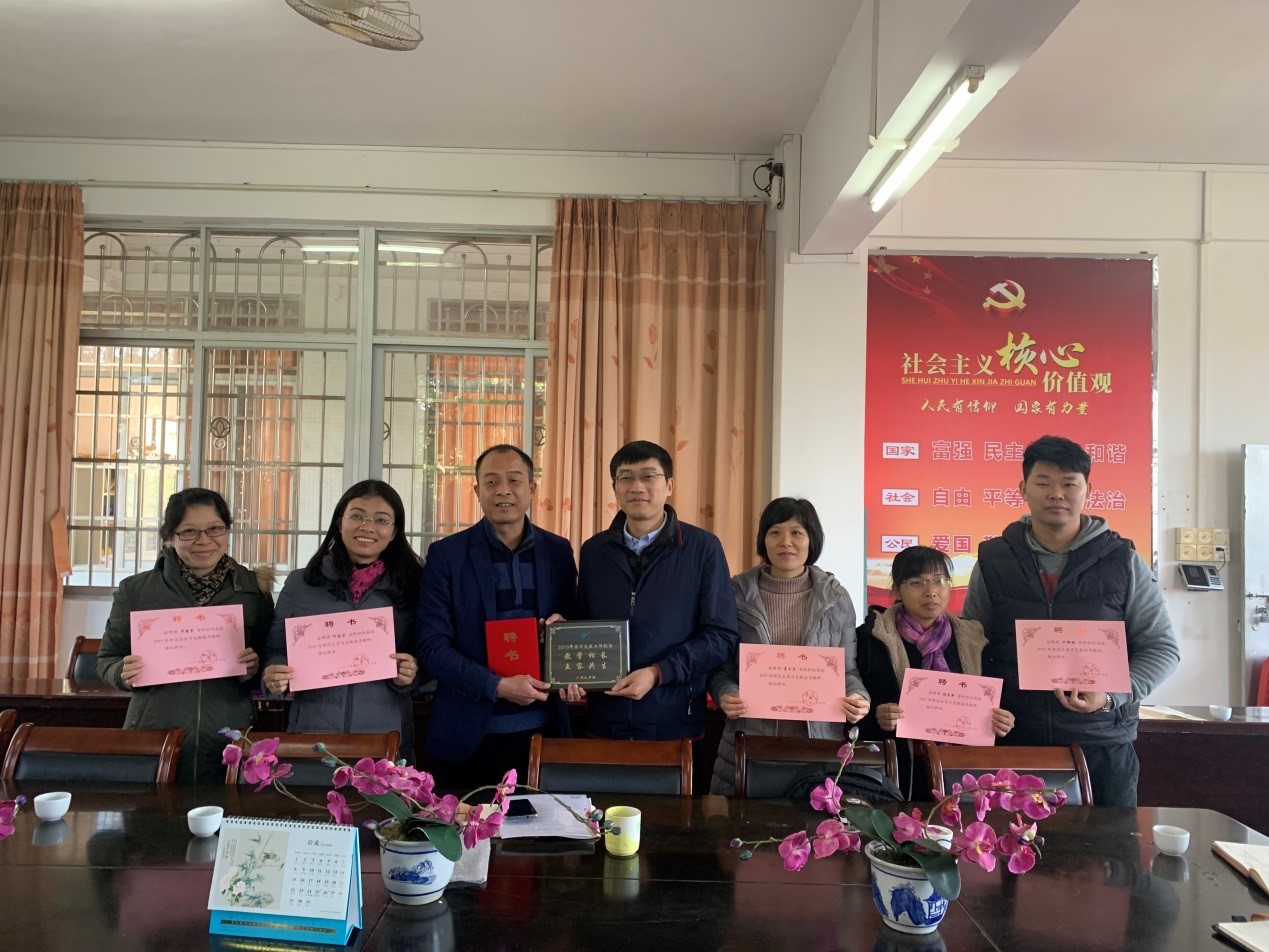 赠予神岗中学“教学相长,互容共生”的纪念牌匾,并为神岗中学指导老师颁发聘书。