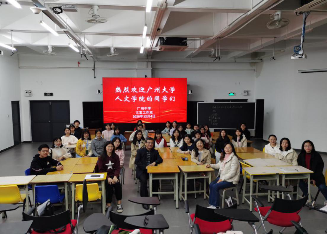 汉语言文学专业师范生,走出大学校园,直进广州中学凤凰校区,开展研修学习活动。这是语文教育教研室主任林晖老师和我校特聘教师、广州中学正高级语文教师郑文富联手组织的一次高校中学联合培养教师教育人才活动,活动还特别邀请了佛山科学技术学院孙琪教授,部分研究生也参加了活动。
