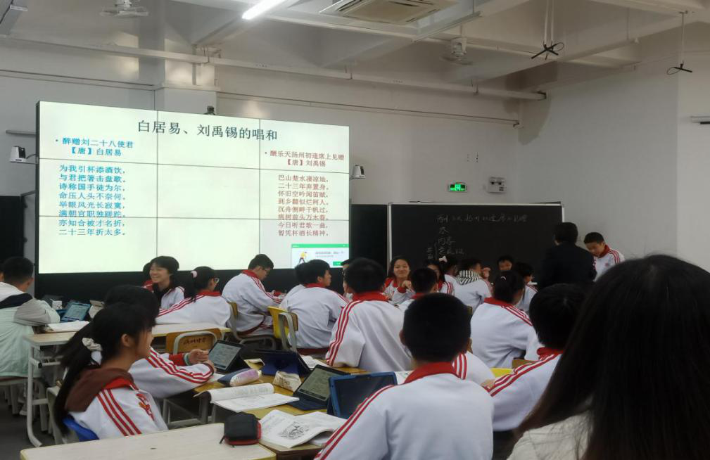 郑老师的“教学形式之巧”还体现于讲授刘禹锡的《酬乐天扬州初逢席上见赠》一诗。以《近试上张水部》和《酬朱庆馀》作为导入,引出酬答诗的学习,从内容、意象、立意等角度归纳酬答诗的特点,进而巧妙地引出白居易和刘禹锡的唱和诗,知人论世,由浅入深,对比分析。