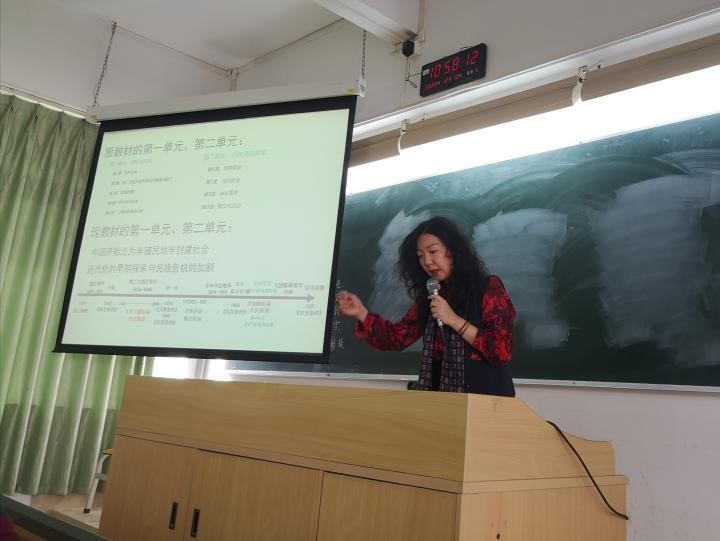 首先,作为实习生,不仅要明白大学专业课的内容同中学历史教学的内容有所区别,更要对新课标改革后的现行统编教材进行新旧对照,分析新内容加入的背后原因,把握好教学重难点。陈雯老师以初中历史新旧教材中的第一、二单元的内容对比为例,提出第一个教学方法为知道中学教学内容的变化。根据新版教材内容量增大、时序性增强的特点,教师可以通过提炼主题和突出重难点的方法有详有略地安排每一节课的教学内容,从而解决课时不够、教学内容讲不完的问题。新版教材新增了有关最新历史研究成果和国际热点问题的内容,因此,在教学过程中,教师需要注意对历史事件表述的精准性,注重培养学生的国家主权意识和海洋意识。陈雯老师以新版的五四运动的历史意义为例,带着大家一起分析关键词语背后所对应的历史信息,从而将有关五四运动的知识点完整地串联起来。通过这种对关键词语进行精准解读的分析方法,可以培养学生的逻辑分析能力,使学生对于历史事件的认识和判断更加到位。