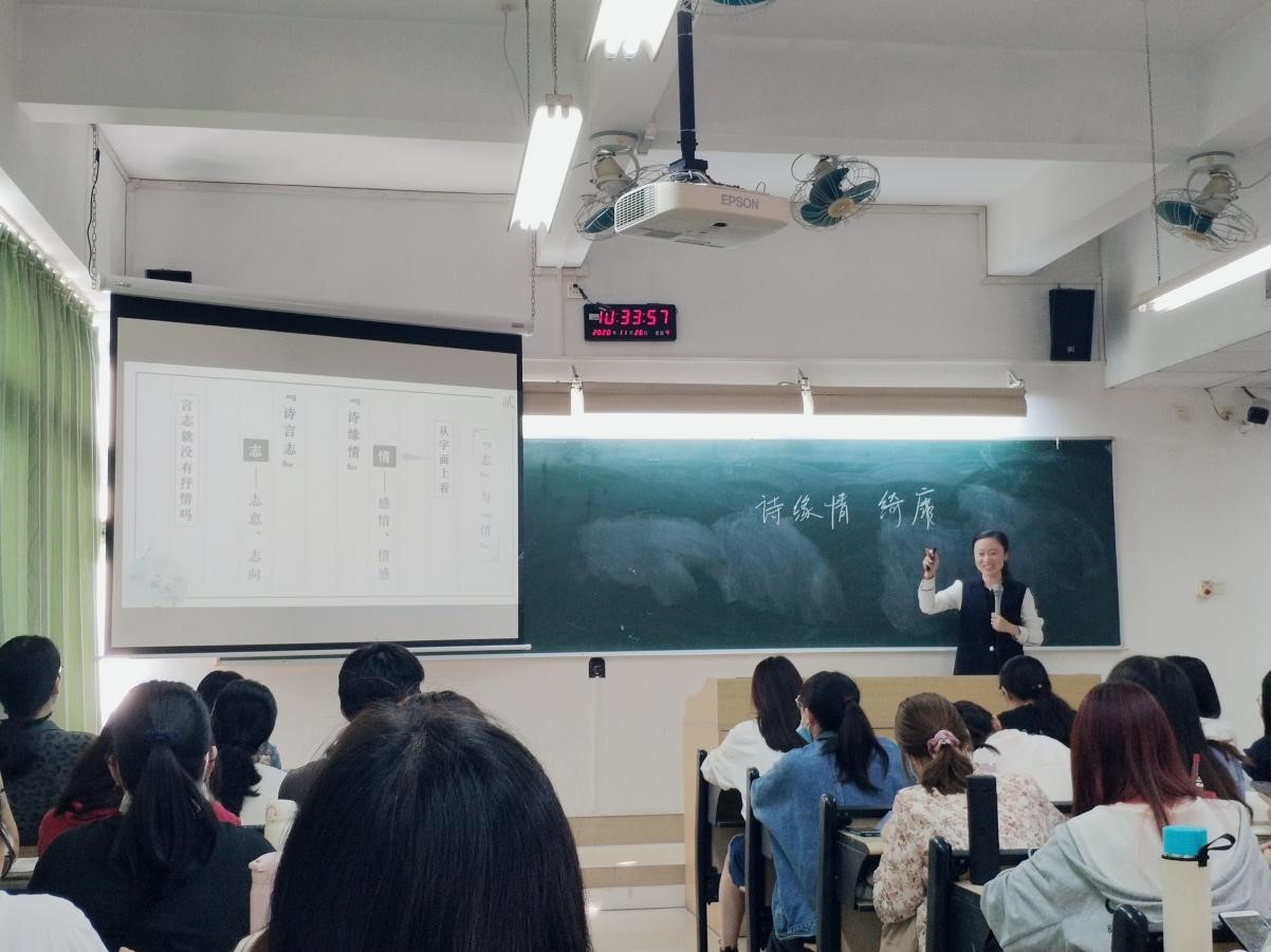 11月26日(周四)第3小节,戴一菲老师主讲的公开课《中国文学批评史》在文新401举行,学校教学督导徐国苓教授到场听课,文学系、历史系十余名教师共同观摩学习。