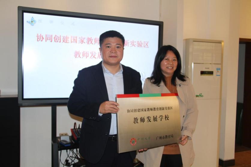 代表,授予广州市第七中学“教师发展学校”的牌匾。
