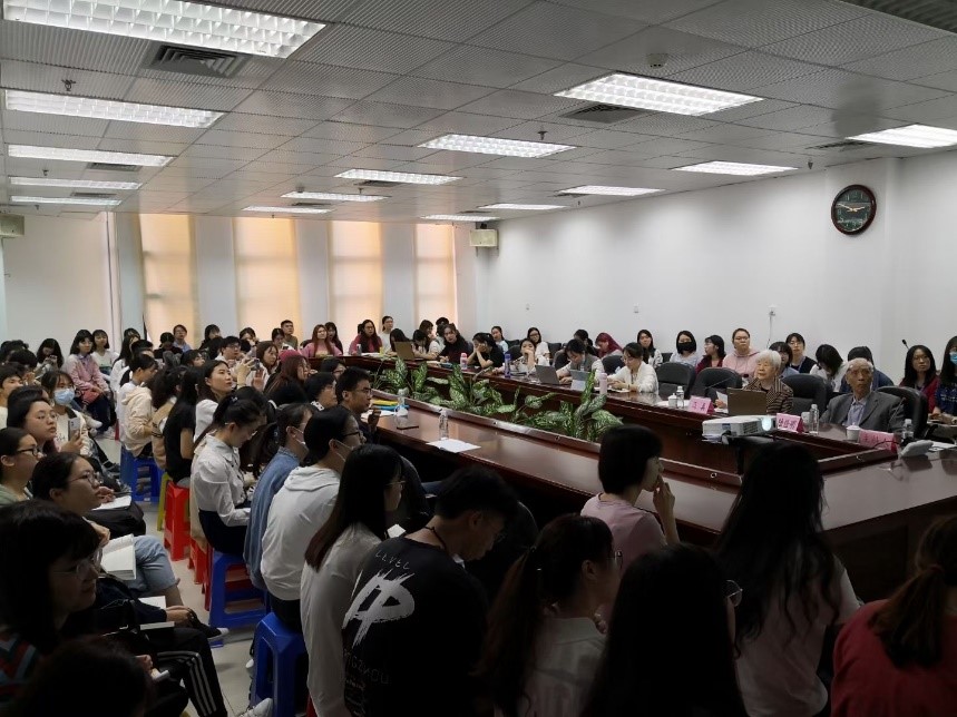 马真教授从个人的研究经历出发,阐述了研究意识和研究能力的重要性,分享了“如何发现研究问题”这一主题。讲座过程中,马教授通过个人语法研究中的亲身经历和词语研究的丰富例证,让大家充分感受到研究中的“趣味”与“初心”。讲座最后,马真教授勉励同学们在学术研究的道路上要做“有心人”,做到“有心用心,勤于思考”。