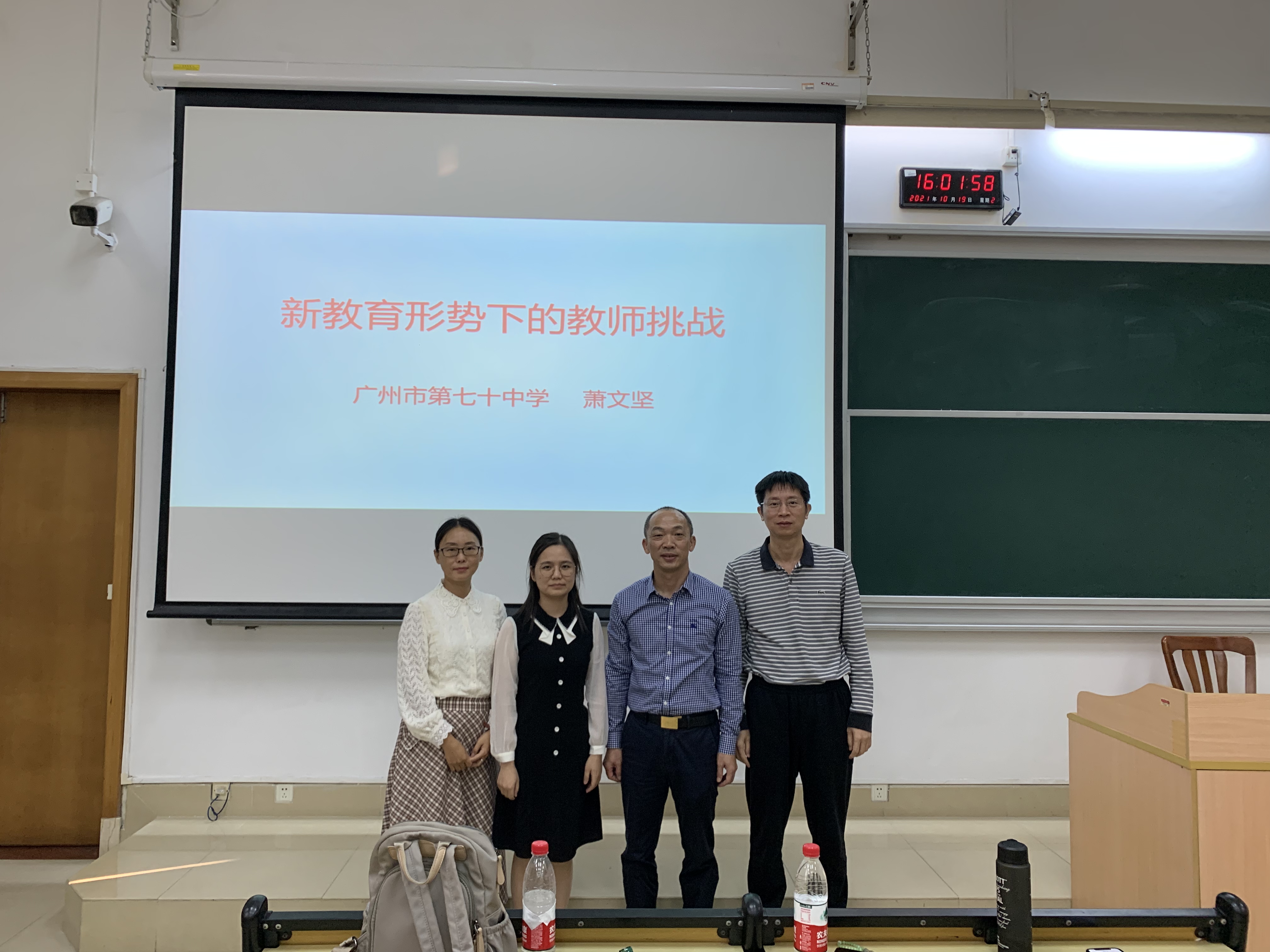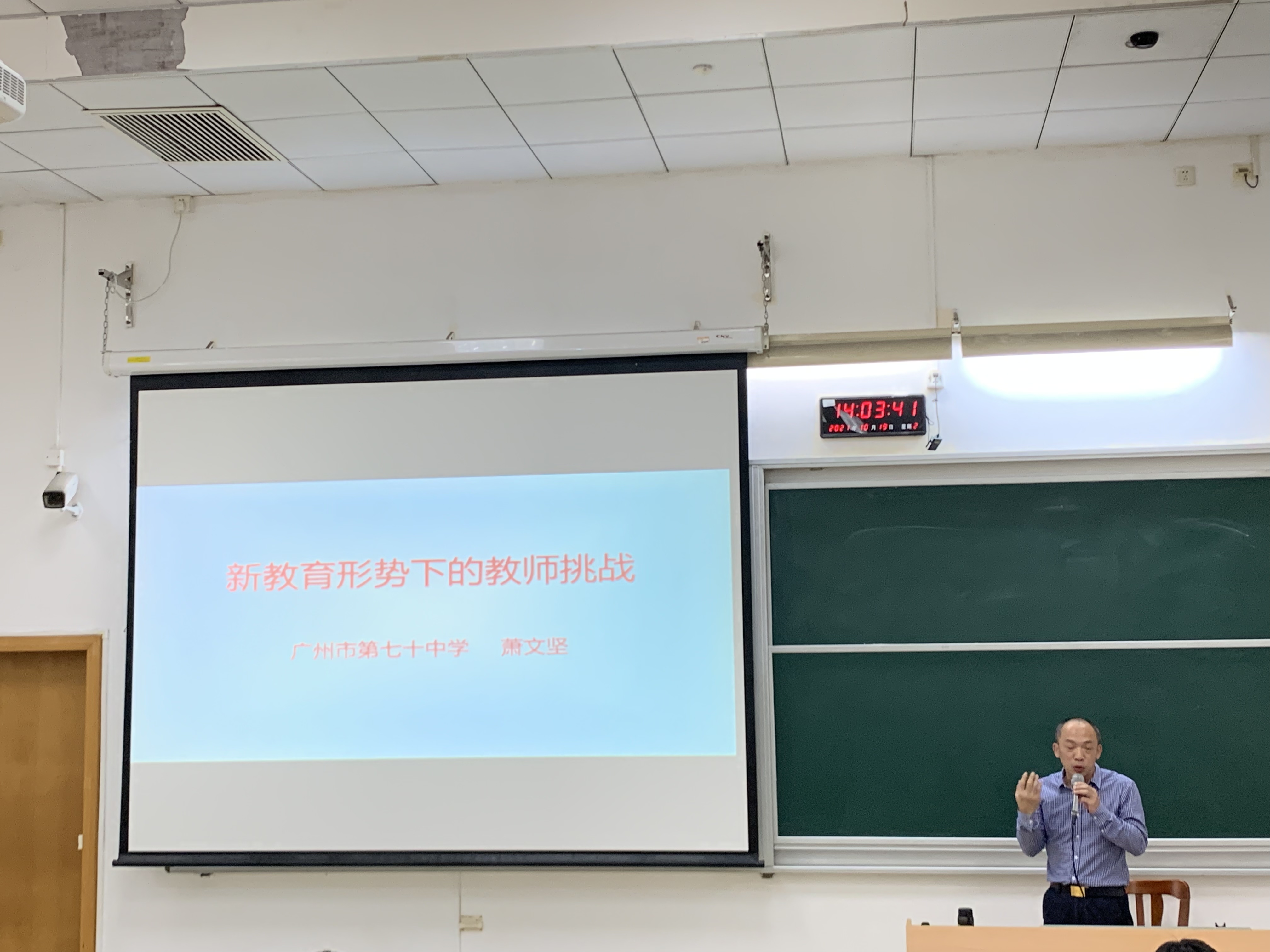 历史系在文清楼407室举办了一场主题为“新教育形式下的教师挑战”的师范生技能讲座。此次讲座由广州市第七十中学的萧文坚校长和历史科组长刘华昆老师担任主讲嘉宾,凌彦老师和吕慧敏老师主持,历史系19级和20级同学参加了这次讲座。