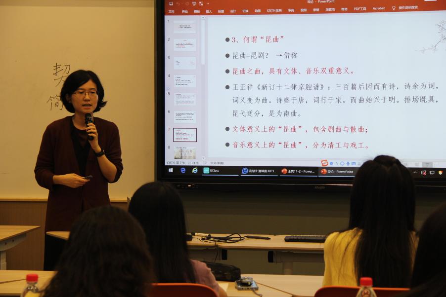 陈燕芳老师清晰简洁地介绍了昆曲与昆剧的区别,进一步从文体和音乐的双重意义上赏析昆曲,并带来了《浪淘沙 渭城曲》昆曲的音频欣赏。江曙老师从当下热词“内卷”引出唐朝的科举制度,进而生动介绍了“三融合”后出现的“四不像”文体,最后解读了唐传奇的成就,是位列唐诗之后的第二优秀文体。