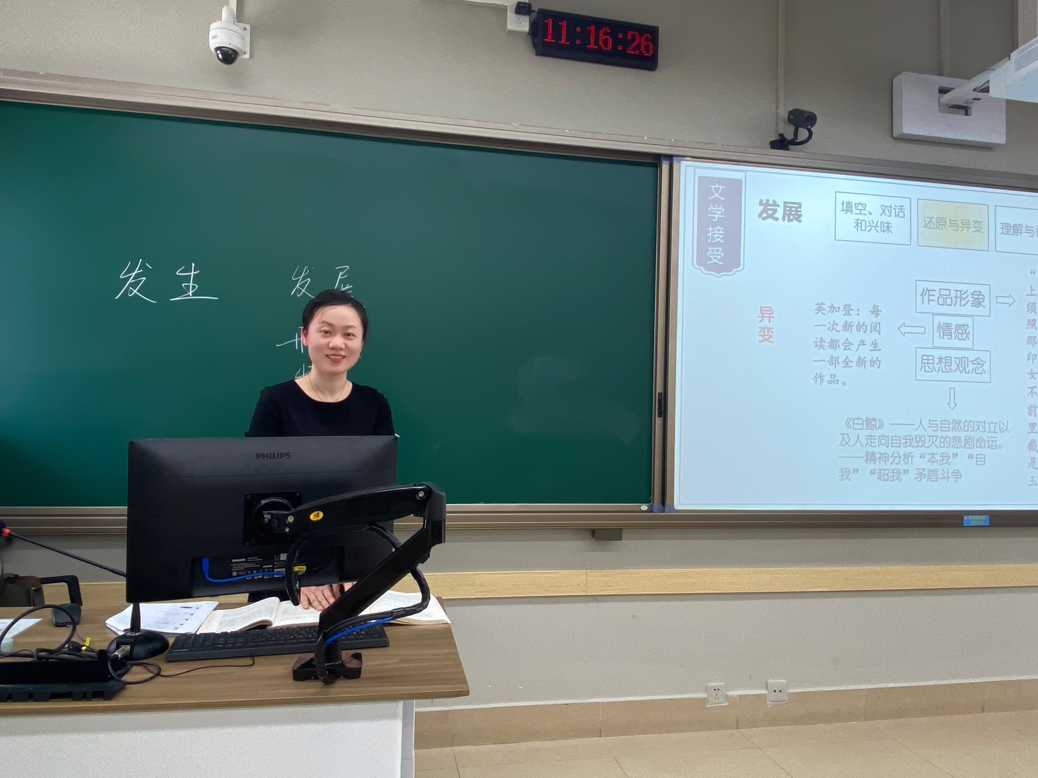 4月20日(周四)第二大节,戴一菲副教授主讲的公开课《文学概论2》在文新324举行,校督导吴小强以及来自文学系、语言学系、秘书学系、历史学系的部分教师代表共同观摩学习。