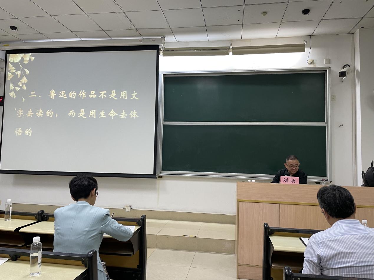 博士生导师刘勇教授,作题为“今天为什么要读鲁迅”的专题讲座。讲座由禤健聪院长主持,哈迎飞教授与谈,李茂增副院长、付祥喜教授、戴登云教授、李建立教授、梁盼盼老师、彭贵昌老师、杨柳老师等两百余名师生参加。