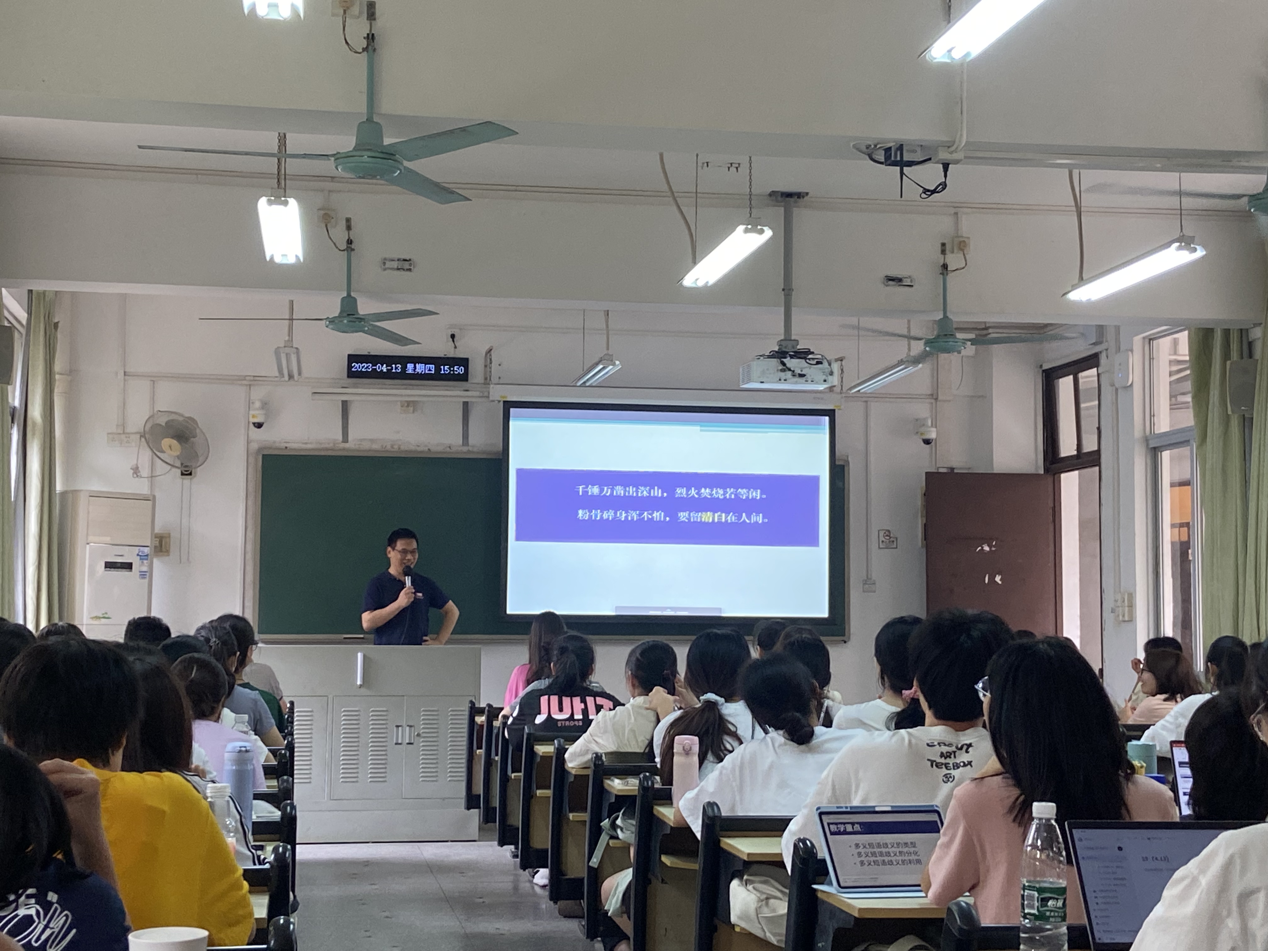 4月13日(周四)第四大节,张迎宝老师主讲的学科基础课程《现代汉语2》在桂花岗11-北303举行,吃瓜网
