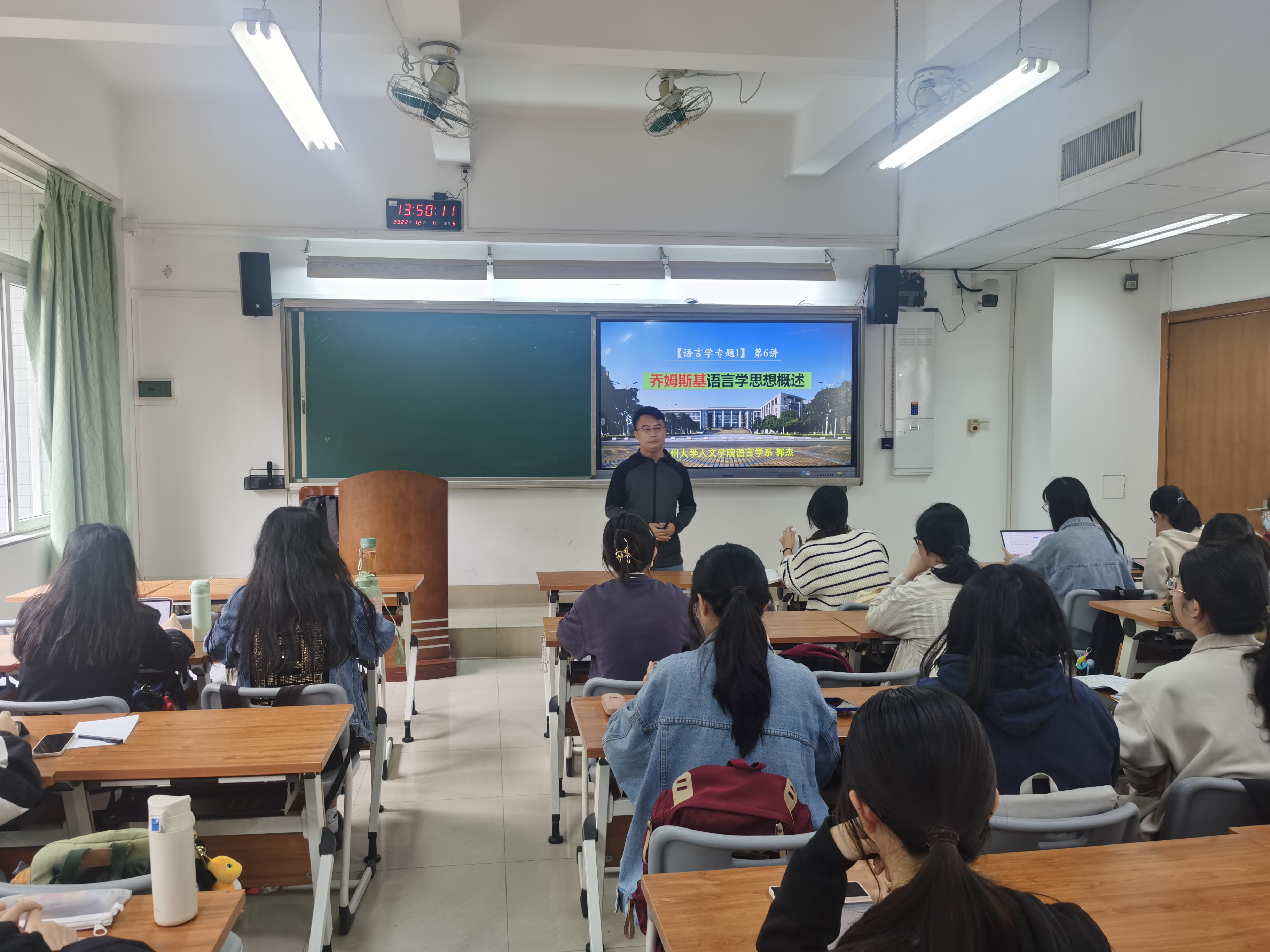 12月1日(周五)第5小节,郭杰讲师主讲的公开课《语言研究专题1》在文清304举行,校督导叶从容,教学院长马喆,系主任张迎宝,以及部分青年教师共同观摩学习。