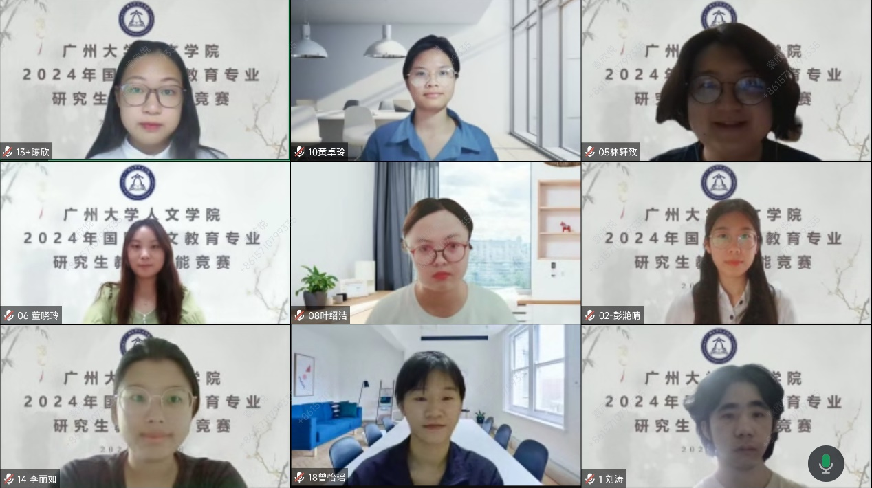 承办,人文经典讲师团协办的2024年国际中文教育专业研究生教学技能竞赛于腾讯会议顺利开展。