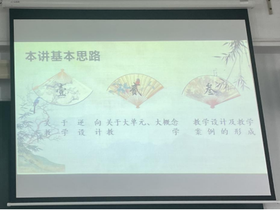 接下来马老师以“关于逆向教学设计”,“关于大单元、大概念教学”和“教学设计及教学案例的形成”为基本思路,向同学们分享了他的看法。