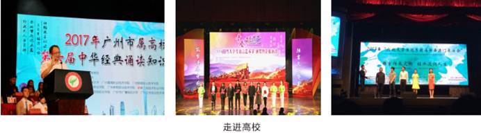 2010年以来,与广州市教育局合作,实施中华经典进中小学活动方案,连续8年在广州市1400余所中小学开展了形式多样的经典推广活动,年均受益的中小学生达到2万余人。
