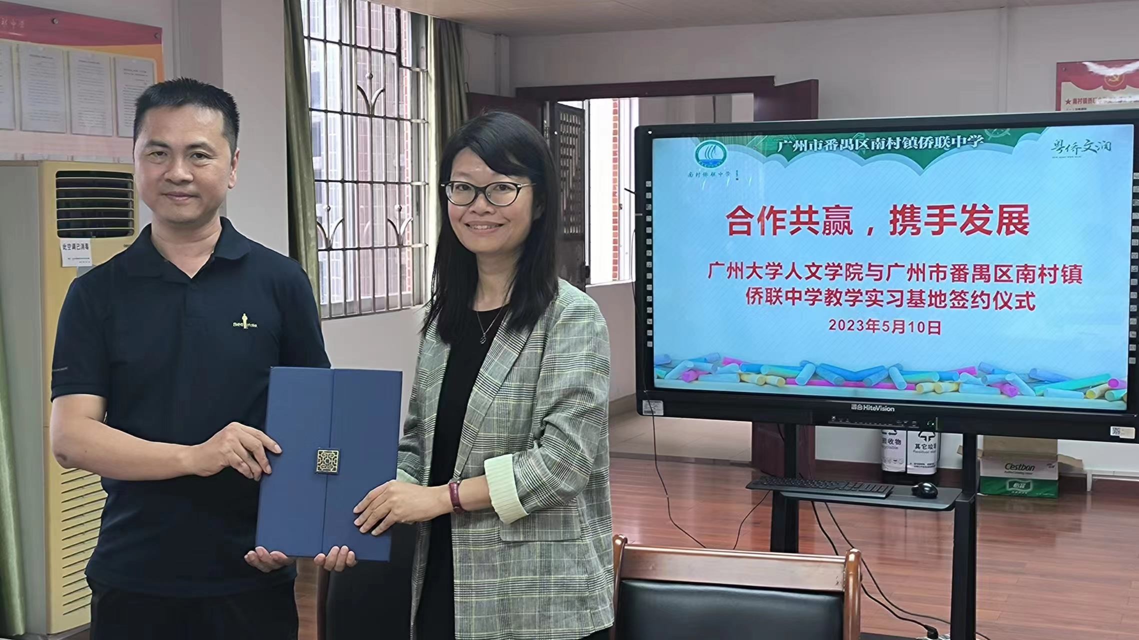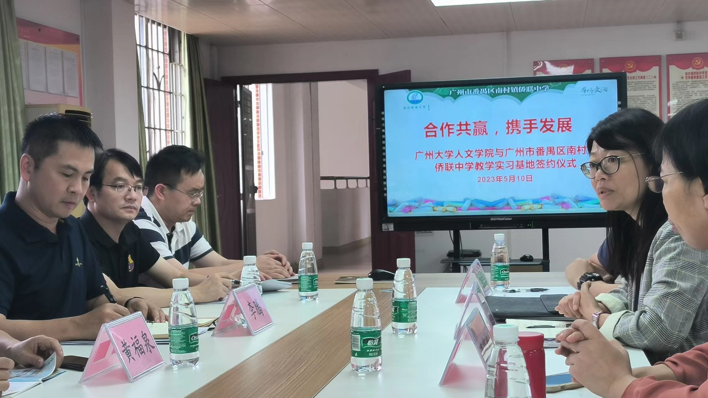 与广州市番禺区南村镇侨联中学教学实习基地签约仪式在南村侨联中学会议室举行。南村侨联中学校长李腾、副校长黄福泉、总务主任曾庆文、教导主任廖志强及我校吃瓜网