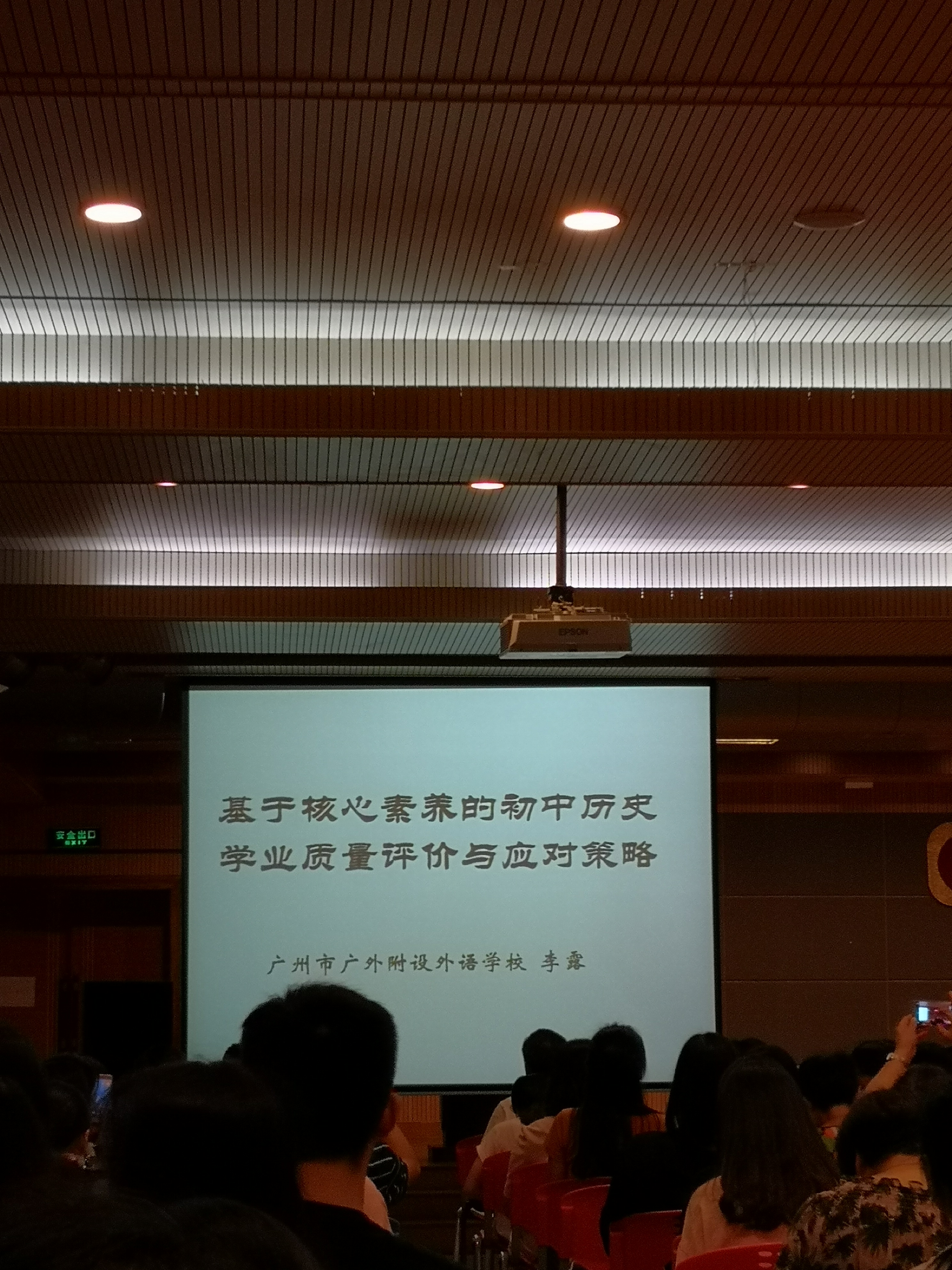 第二场,广州市广外附设外语学校李露老师进行《基于核心素养的初中历史学业质量评价与应对策略》专题报告,重点以选择题和历史调查报告为例,就如何培养核心素养和基于核心素养进行初中历史学业质量评价提出应对策略,并推荐了相关参考著作和论文。