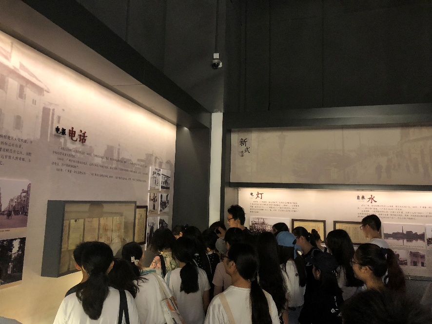 随后,大家参观了名城广州展区,该展区是以档案、文物实物及影像等形式布展,全面展示了广州自秦汉便为中国大都会直至清代十三行的城市发展史和海上丝绸之路的历史轨迹,也深切感受到清代以来广州的民风民俗及衣食住行的人文风貌,充分体会到岭南传统文化的魅力。