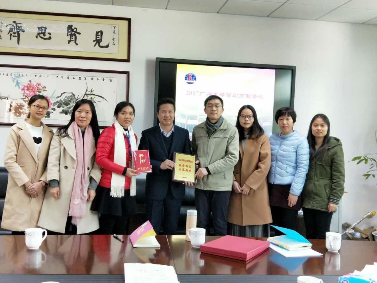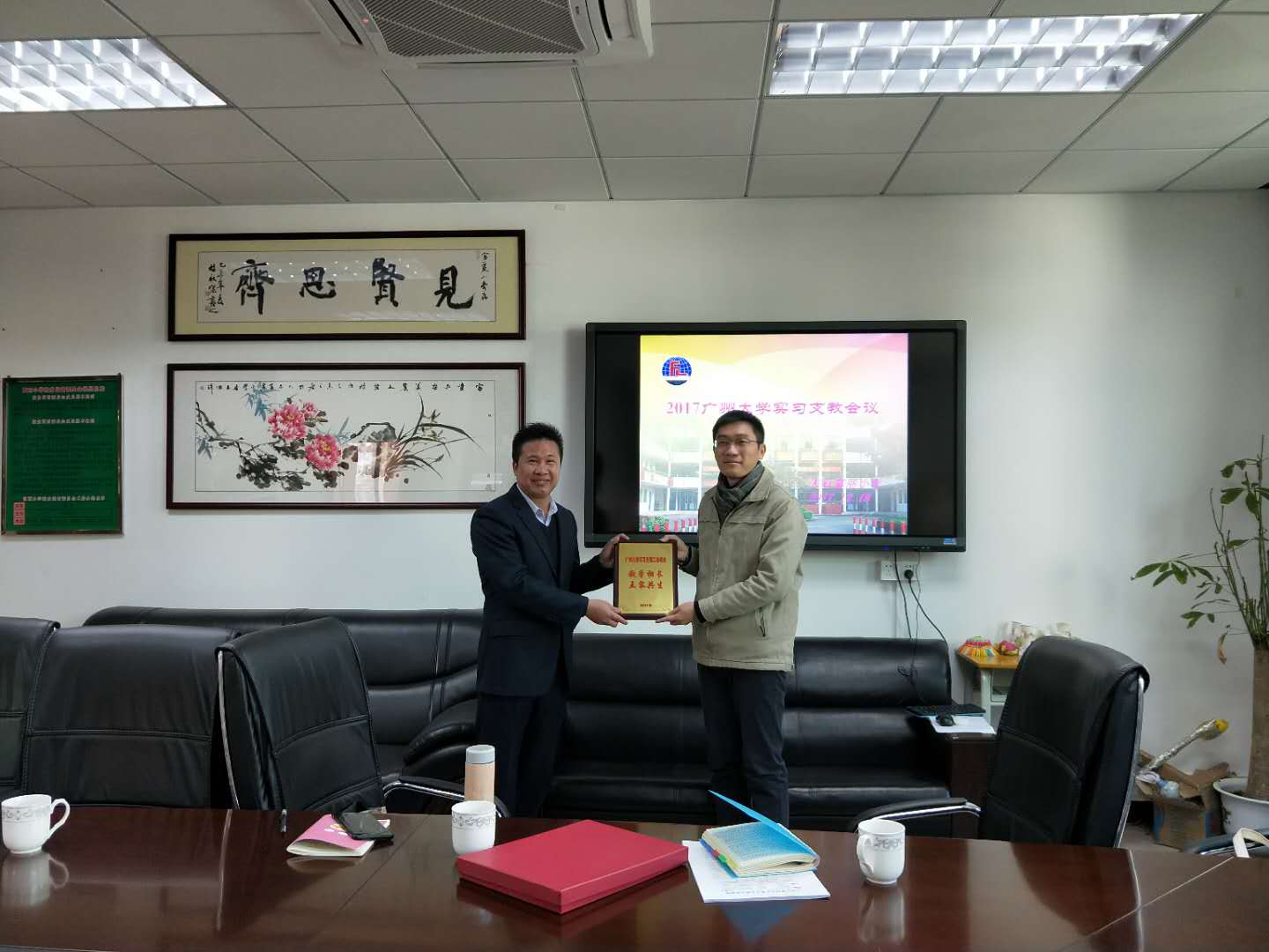 实习支教工作纪念”牌匾,两校建立教学相长、互容共生的友好合作关系,并且合影留念。