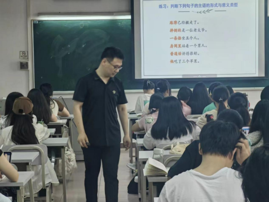 4月24日(周三)第三大节,语言学系张迎宝老师主讲的公开课《现代汉语4》在桂花岗5北705举行,院督导徐奇堂老师和部分青年教师参与观摩学习。