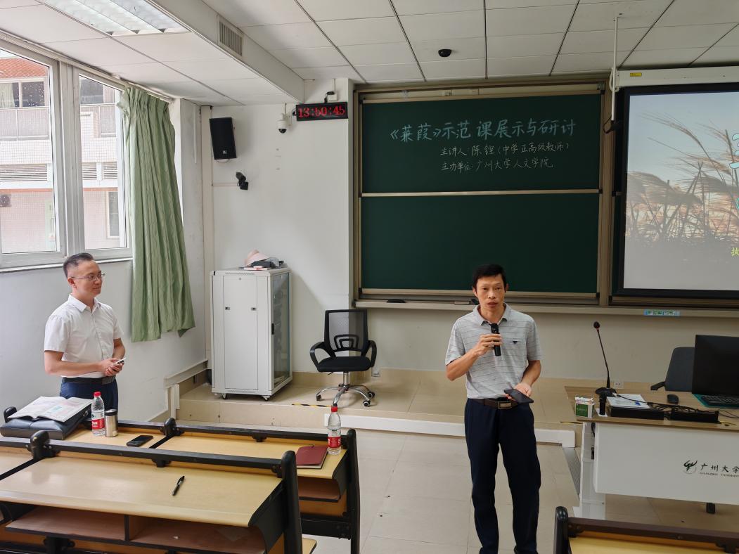 与以往的语文课程教学讲座不同,在本次活动的前半程,陈铿老师以一节别开生面的《蒹葭》示范课为同学们展示了古诗文教学在课堂中的鲜活呈现。展示课上,在场的同学们以学习者的身份沉浸式走入了中学课堂,陈铿老师也全方位地展示了一名中学语文名师的综合素养与课堂魅力。