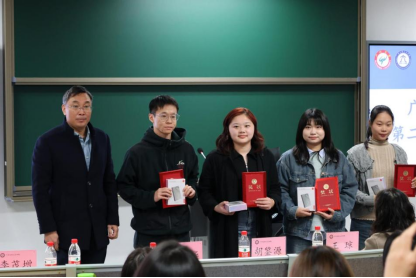 颁奖环节,王琼书记、李茂增副院长、张立副书记和胡鉴源副书记为获奖同学颁发奖状奖品。