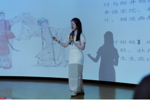 民族特色表演余味尚存,昆曲的诗意优雅即刻登场。昆曲《游园惊梦》呈现出诗意与浪漫情怀,李舜华教授和硕士研究生李璇带我们梦回旧时江南,品味爱情万千头绪和千缕情思,沉醉于梨园绮梦的中华古韵。