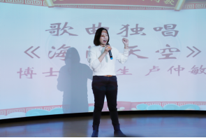 《在水中央》的轻柔余音未绝,港风摇滚的激昂旋律奏响。博士留学生卢仲敏激情演唱《海阔天空》,唱出了对梦想的追逐,唱出了对生活的热爱,也唱出了不羁与自由,展现出人文学子大气磅礴的力量。