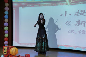 从上春山的诗意中走来,汉语223班王菁同学为我们带来小提琴演奏《新春乐》,以西洋创作手法为基础的小提琴曲融入了醇厚的中国年味,会场瞬间洋溢起新年将至的喜乐氛围。