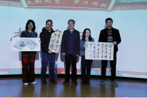 最后一轮抽奖环节来临,一等奖最终花落谁家?结果即将揭晓!此次一等奖的奖品乃是出自戴伟华教授之手的墨宝三幅。王琼书记及戴伟华教授为三位老师颁发一等奖奖品。
